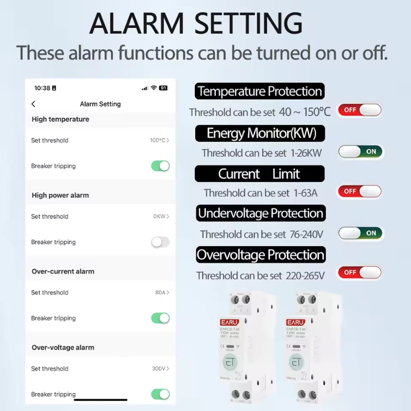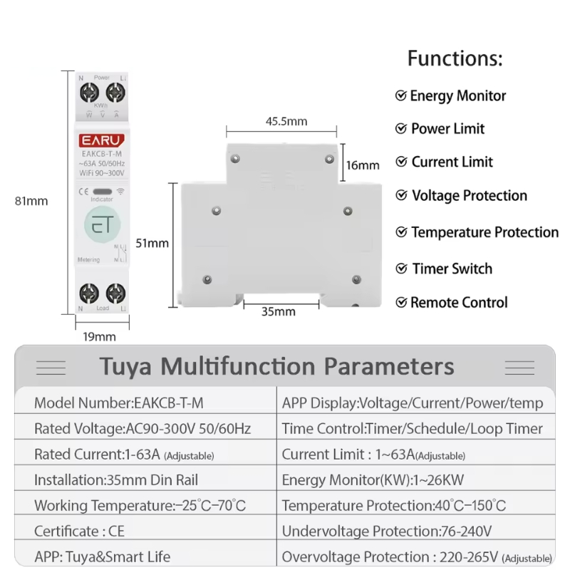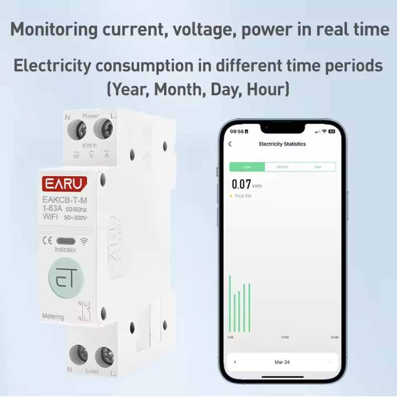 Công Tắc đóng cắt 1P 1-63A Wifi Tuya Smartlife Có Đo Điện