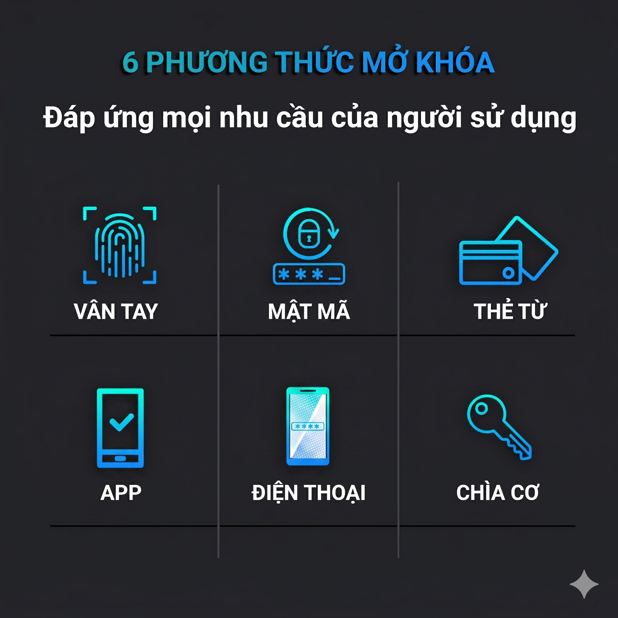 • Vân Tay (100) , Thẻ Từ, Mật Mã (200), Chìa Cơ