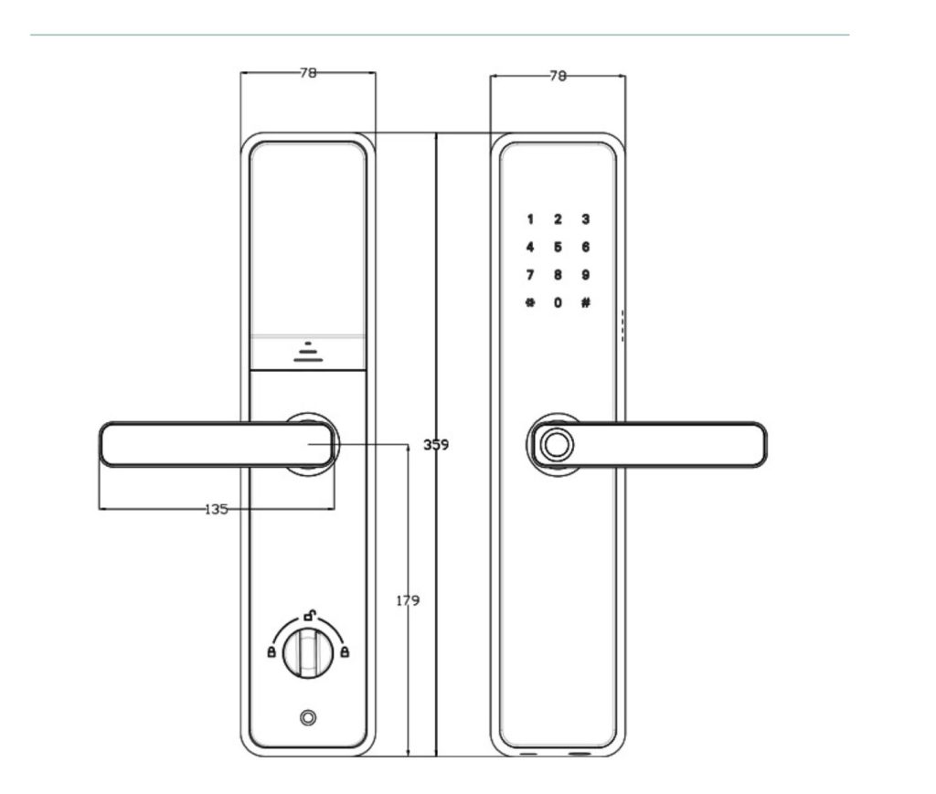 • Kích thước đại sảnh: Với thông số 359 * 72 * 28mm, khóa tạo cảm giác chắc chắn, uy nghi khi lắp đặt lên các cánh cửa lớn.