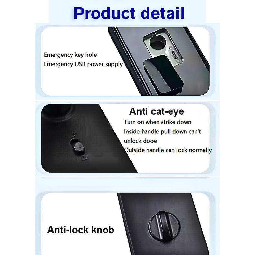1. Mở Khóa Bằng Vân Tay: Sử dụng công nghệ cảm biến vân tay FPC của Thụy Điển, nhận diện nhanh và chính xác, giúp tiết kiệm thời gian và đảm bảo an ninh cao.